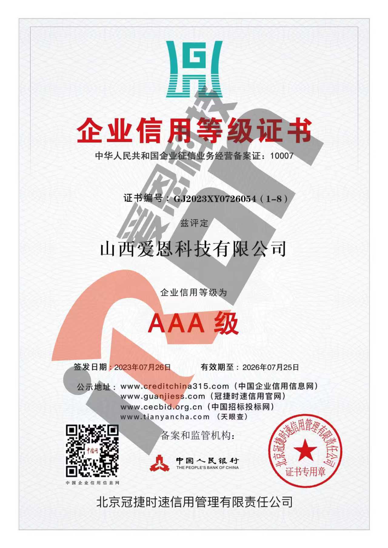 企业信用等级证书