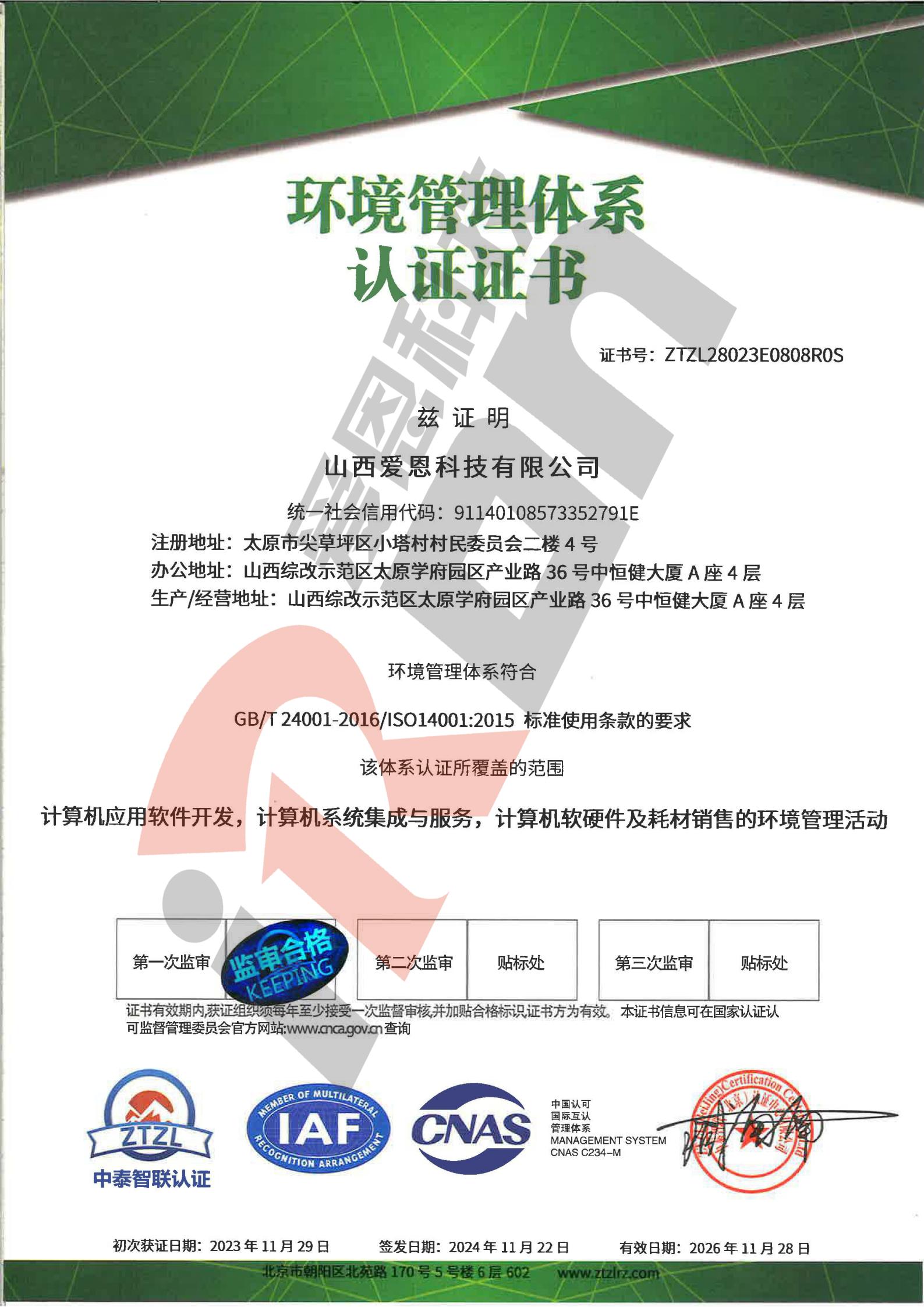 环境管理系统认证证书