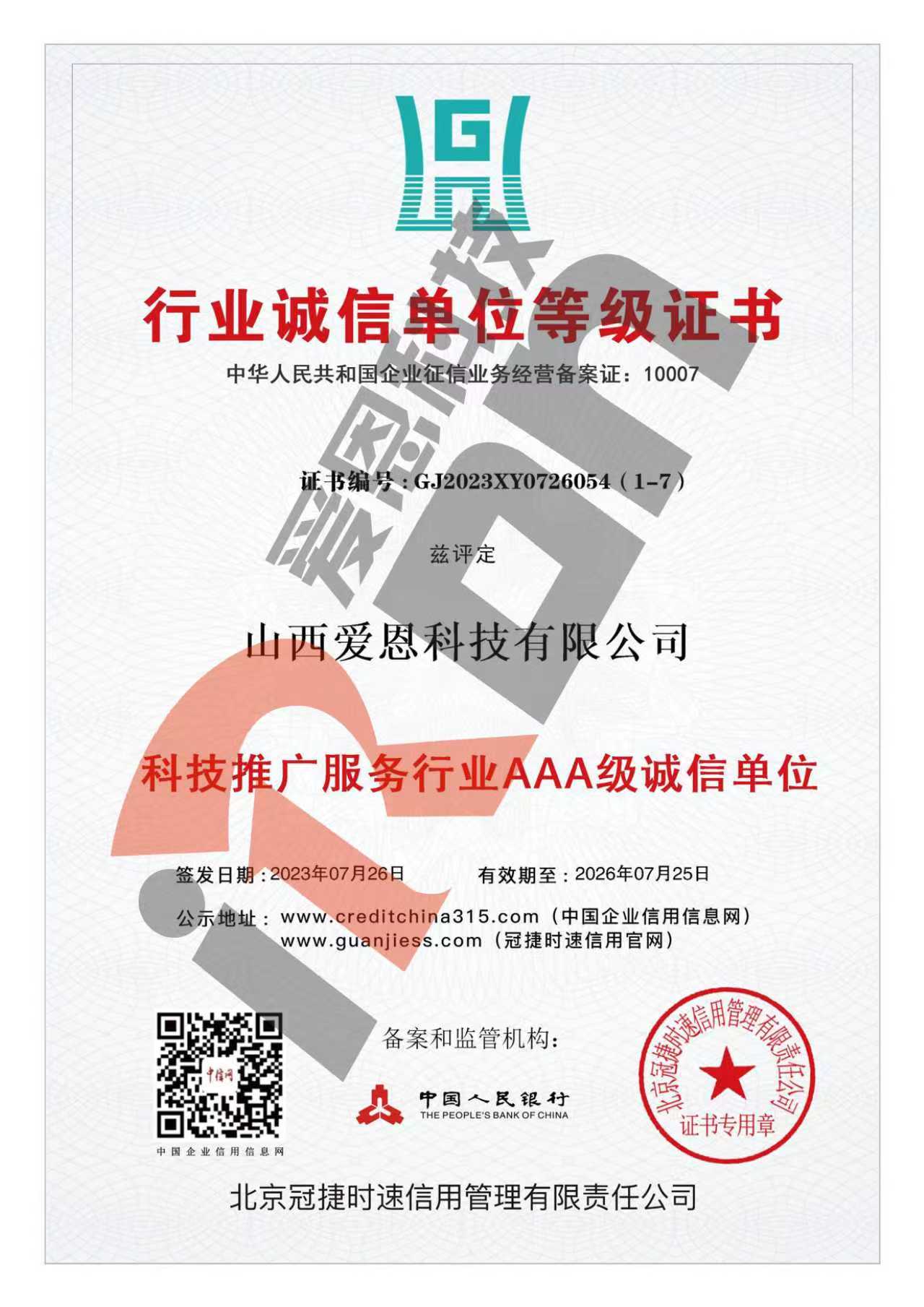 企业信用等级证书